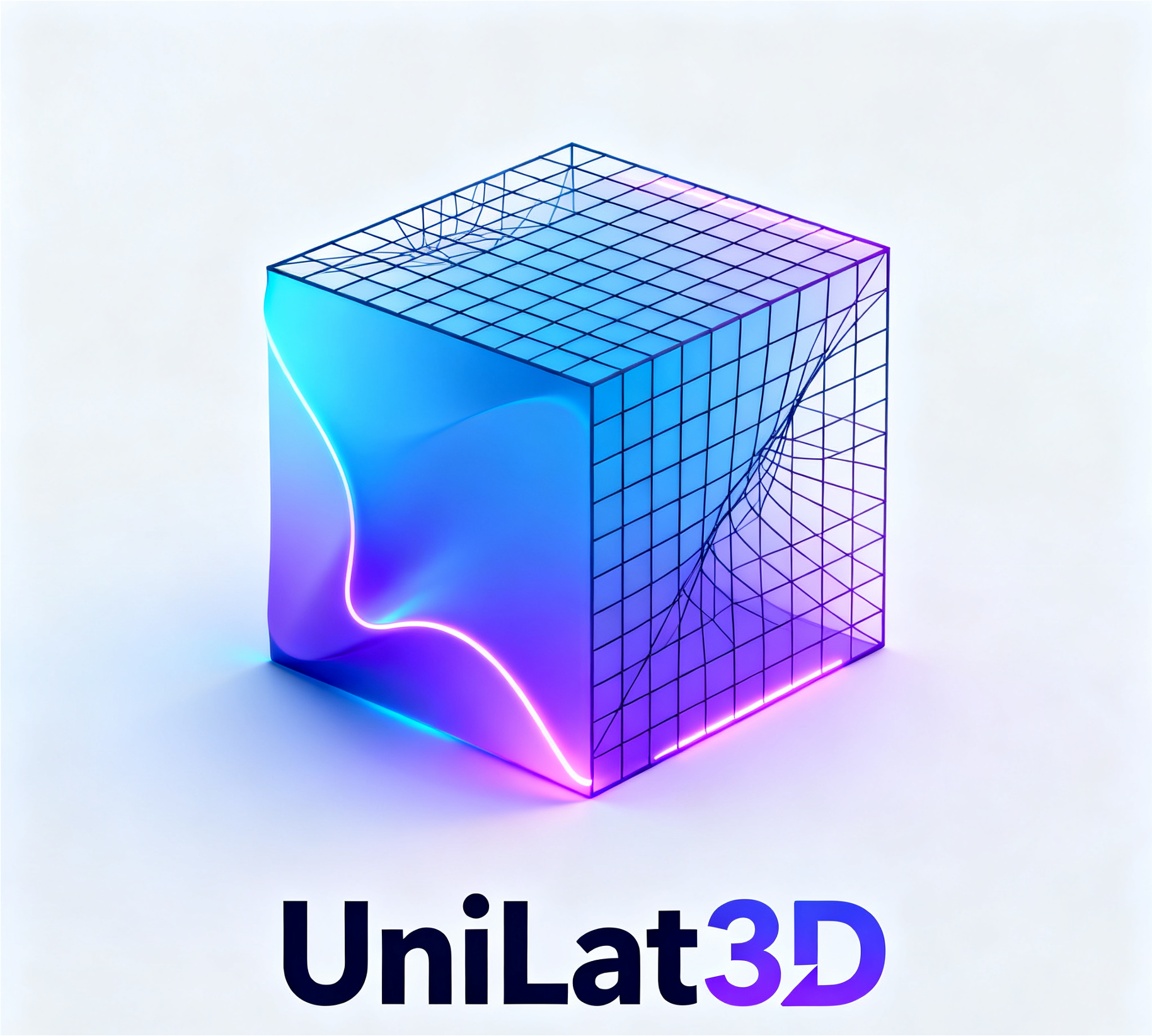 Illustration of the UniLat3D framework. In the reconstruction stage, the encoder of Uni-VAE \(\mathcal{E}_\mathrm{uni}\) converts the 3D asset \(\mathcal{O}\) to the unified latent -- UniLat \(\mathbf{z}_\mathrm{uni}\), which can be directly denoised